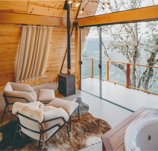Envoltas pelo encanto natura, nossas cabanas prometem uma experiência que vai além de uma simples estadia. Um refúgio onde o toque suave da natureza encontra o conforto acolhedor do lar.
