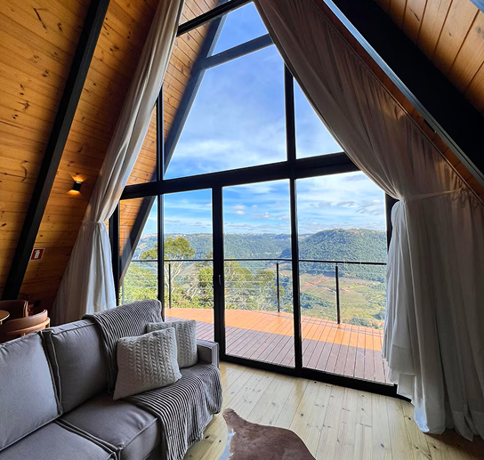 Chalés em local alto e com vista para a natureza. Cabanas de charme ideal para um final de semana romântico na Serra Gaúcha.